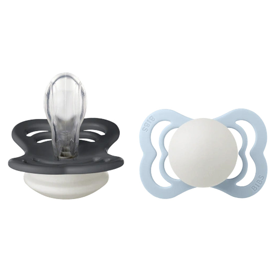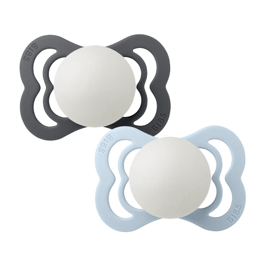 Bibs Supreme 2-Pak Silikone Sut, Str 1 - Iron / Baby Blue NIGHT