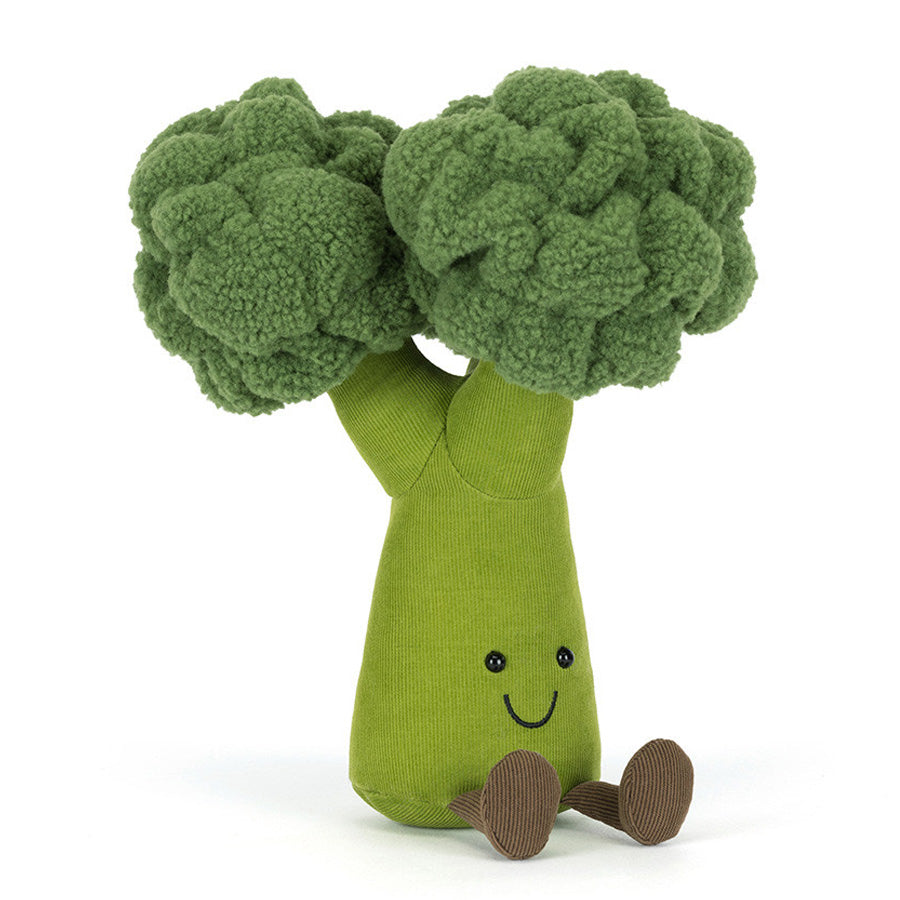 Jellycat Amuseables Broccoli er en sjov og finurlig bamse, der forvandler en grøn grøntsag til en blød og charmerende legekammerat. Med sin fyldige top, bløde stilk og små dinglende ben er den både hyggelig at kramme og dekorativ at have stående – perfekt til børn og voksne med sans for humor.