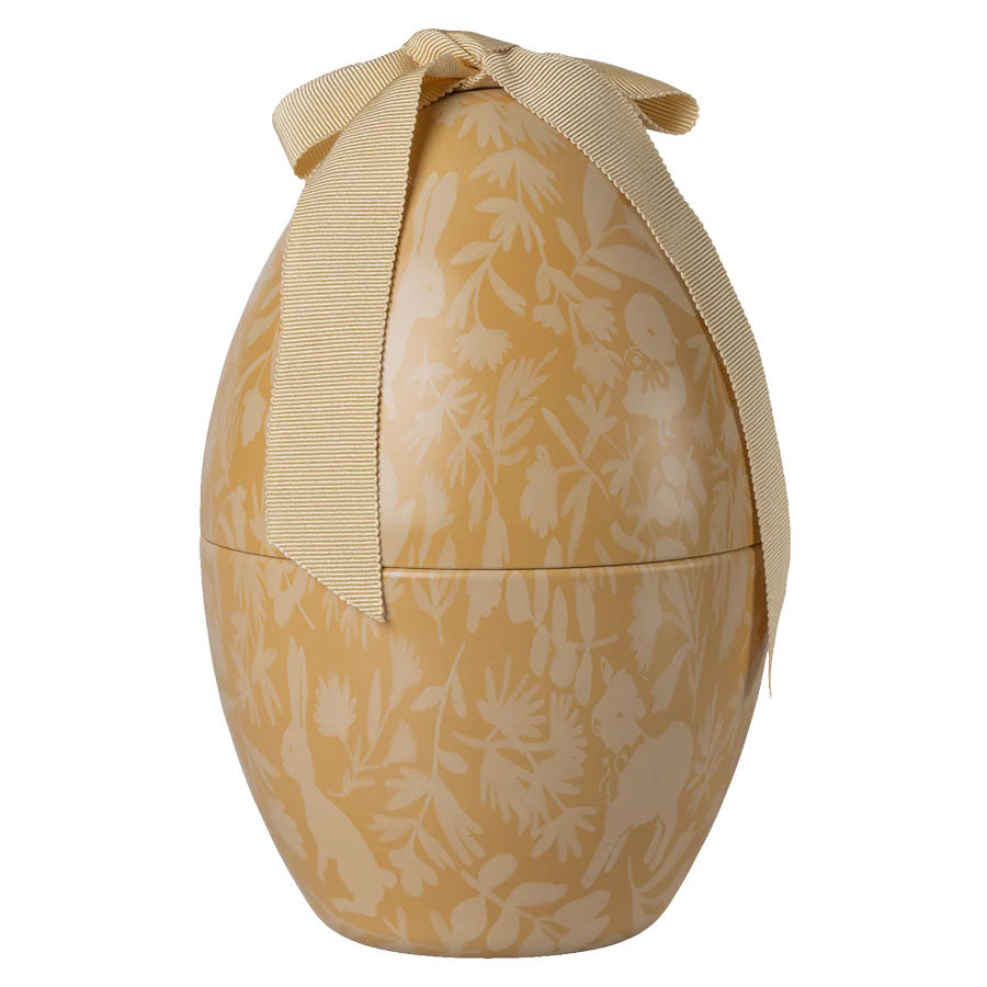 Medium Påskeæg i Gul er et dekorativt metalæg med smukt print og sløjfe 🐣