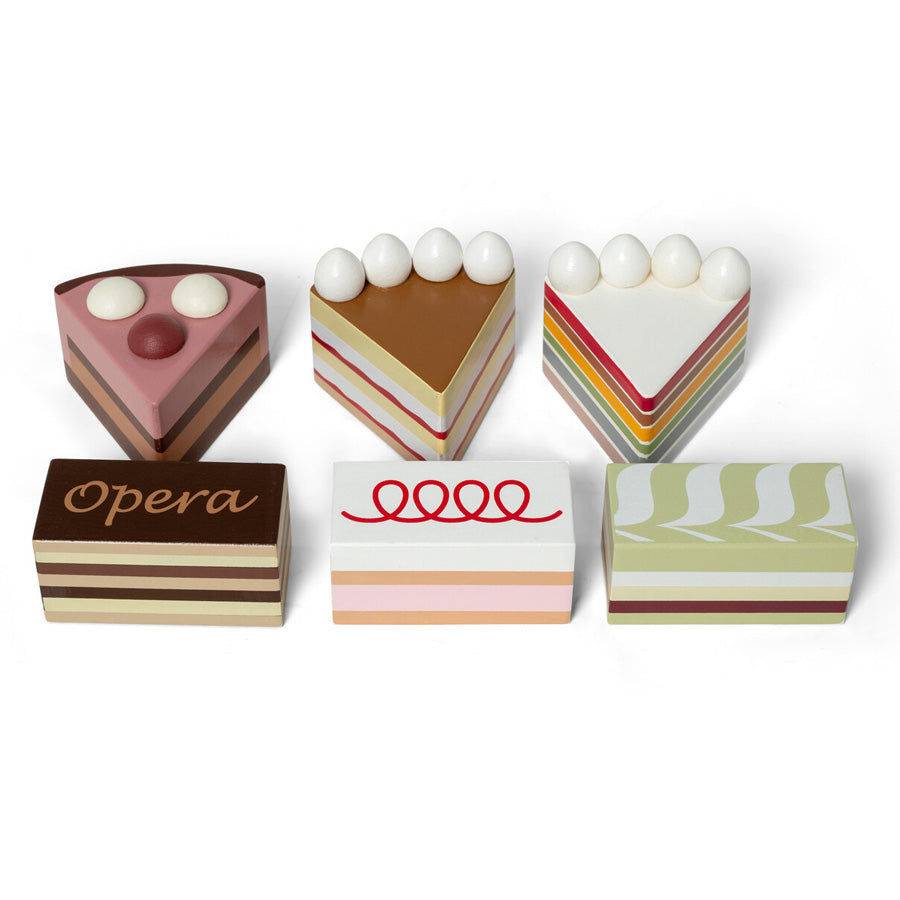 - 6 lagkagestykker i træ