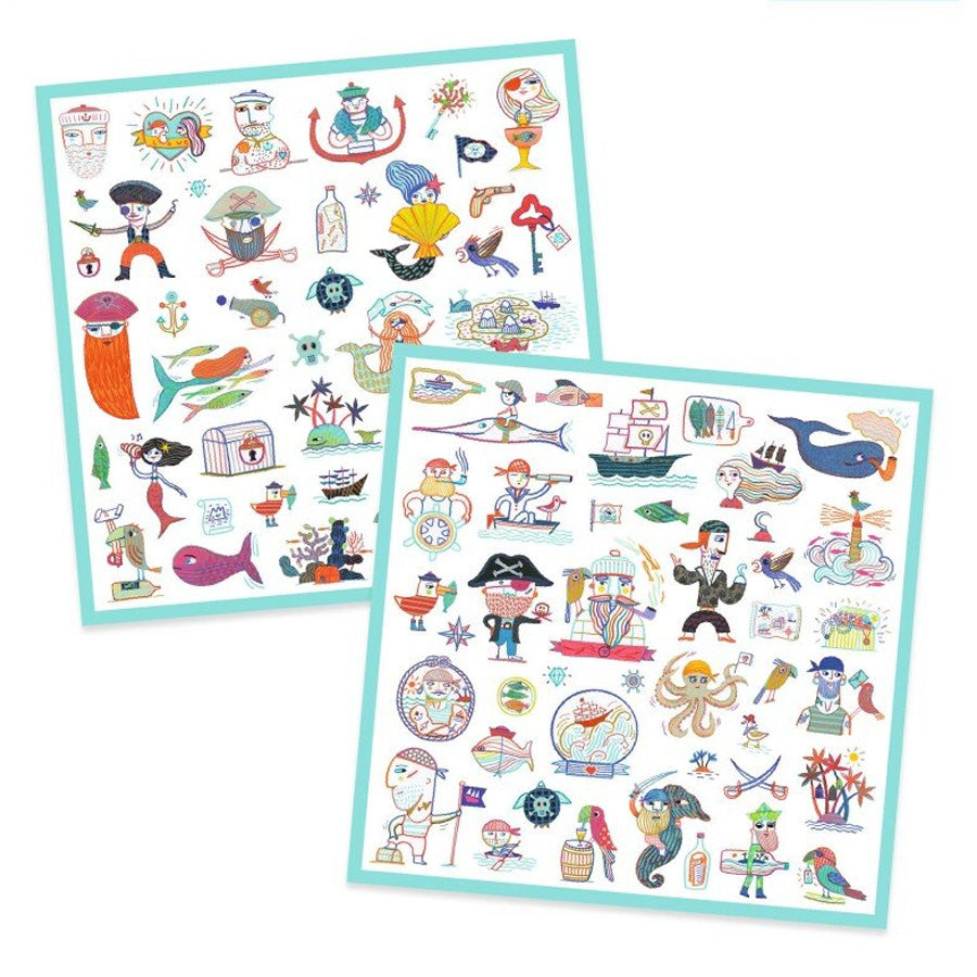 Klistermærker med Piratangreb fra Djeco er et fantasifuldt klistermærkesæt, hvor børn kan slippe deres indre sørøver løs. Med masser af figurer og detaljer kan de skabe deres egne pirathistorier fyldt med skibe, papegøjer og eventyr på åbent hav.