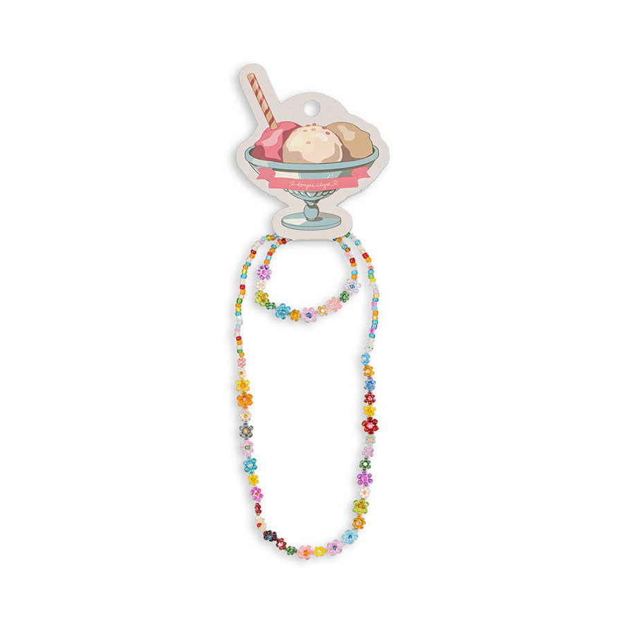 Konges Sløjd Flower Field Halskæde Og Armbånd, Multi Sødt smykkesæt med halskæde og armbånd i farverigt blomster-tema. Perfekt til udklædning, leg og sommerlige outfits 🌸✨