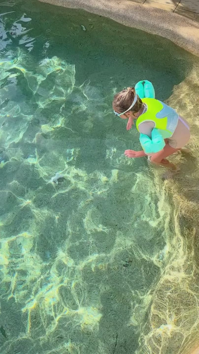 - Anti-dug funktion: Forbedrer sigtbarheden under vand, så barnet kan se klart