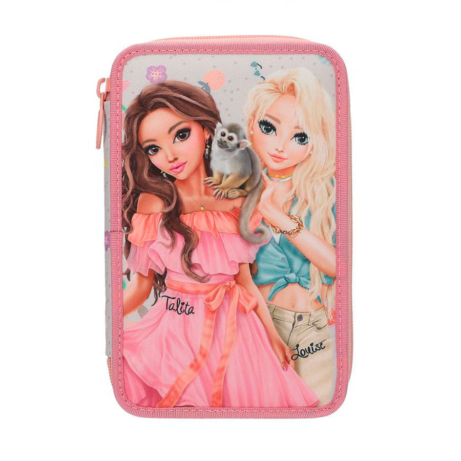 - Farverigt & iøjnefaldende design: Dette penalhus fra TOPModel er dekoreret med et flot dobbelt modelmotiv på forsiden og masser af farverige prints rundt om – perfekt til kreative sjæle, der elsker stil og personlighed.