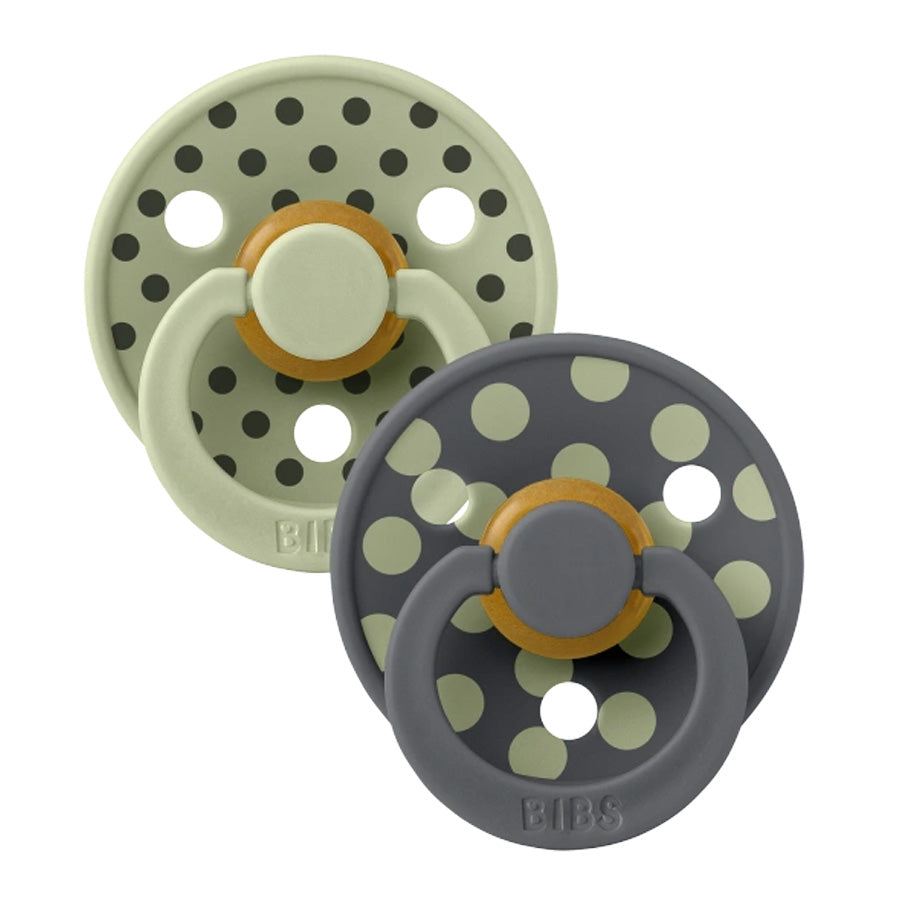 Kort sagt er Bibs Studio Sut 2-Pak Polka Str 2, Sage / Iron et komfortabelt og stilfuldt suttesæt i blød naturgummi, der kombinerer tryghed, funktion og dansk design – perfekt til de lidt større babyer.