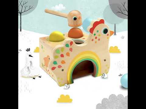 Denne charmerende hammerhøne fra Djeco gør det sjovt at øve motorikken. Bank æggene gennem hullerne og se dem trille ud igen – en klassisk favorit fra Djeco.