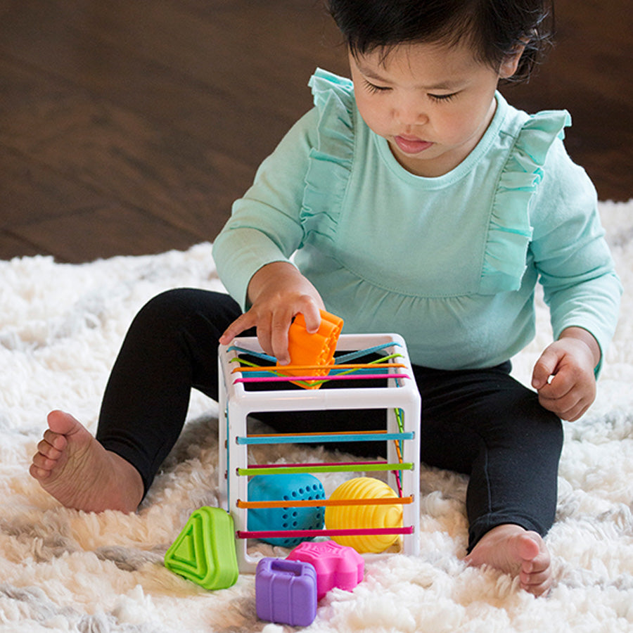 Nogle gange er det de enkleste lege, der fanger mest. Fat Brain Inny Bin er en farverig aktivitetskube til de mindste, hvor barnet kan presse, trække og udforske former igen og igen. Den kombinerer sanselig leg med nysgerrighed og træner små hænder – perfekt til babyer og tumlinger, der elsker at mærke, prøve og opdage selv.