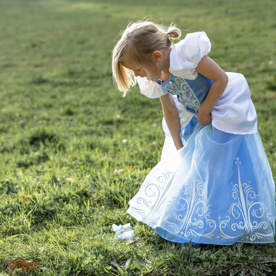 Once Upon a Princess Askepot Kjole fra Great Pretenders er til børn, der drømmer om bal, glassko og magiske midnatsøjeblikke. Den lyseblå prinsessekjole med hvide detaljer giver et klassisk Askepot-look og gør det nemt at forvandle sig til aftenens midtpunkt – uanset om det er fastelavn, udklædningsfest eller leg derhjemme.