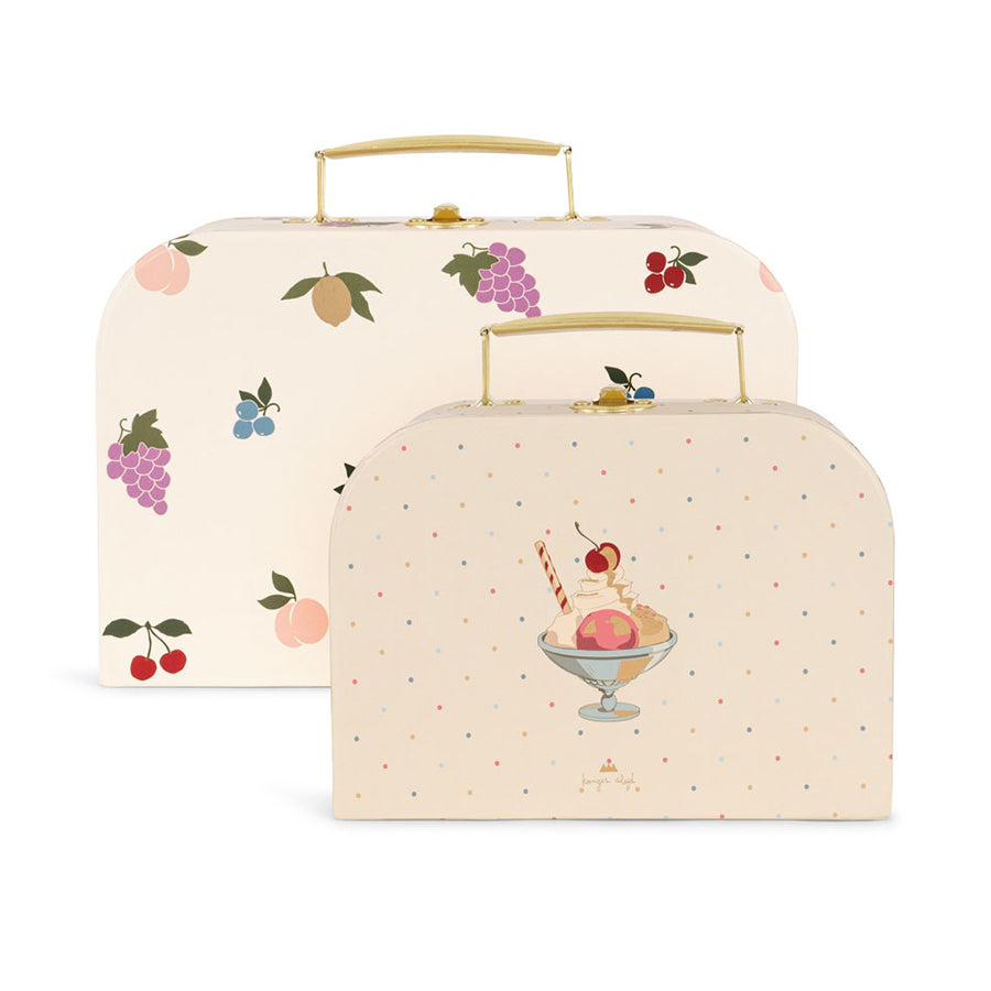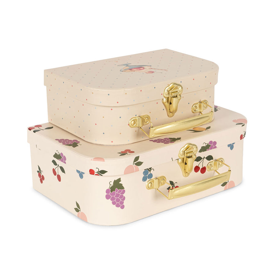 Konges Sløjd 2-Pak Kuffertsæt, Fruity Sæt med to dekorative papkufferter med metalhåndtag – perfekte til opbevaring af små skatte og nemme at stable 🌈🧳
