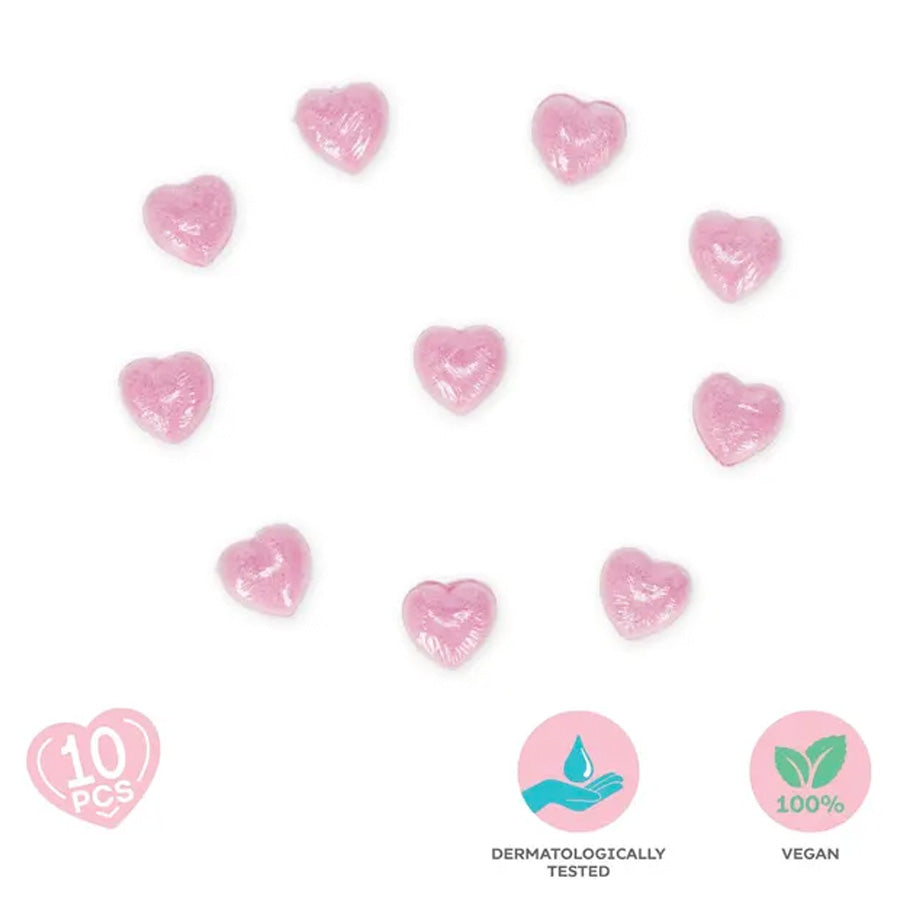 Sæt med 10 veganske mini badebomber, der bruser, dufter og farver vandet – perfekt til afslapning eller som gave.