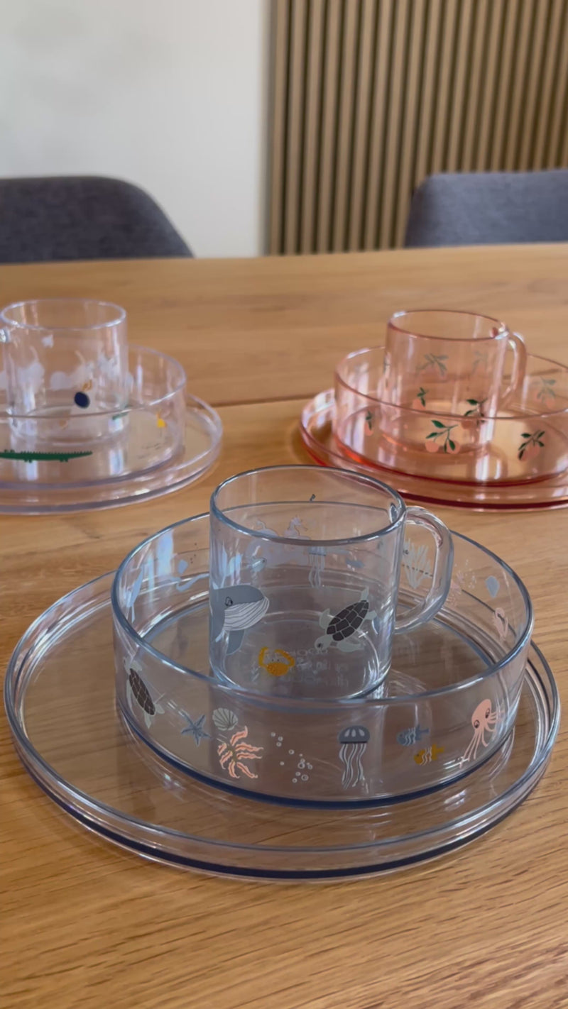 Elegant spisesæt fra Liewood fremstillet i holdbart og brudsikkert tritan. Sættet kombinerer et glaslignende udtryk med praktisk funktionalitet til børnefamilien.