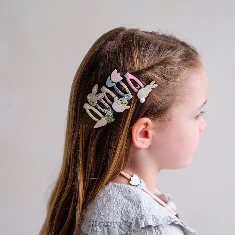 Mimi & Lula 5 Hårspænder, Mini Bunny And Chic – Easter er et sødt og dekorativt hårpynt-sæt, der giver et festligt og charmerende look til barnets frisure.