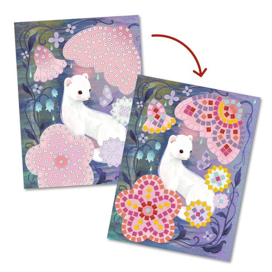 Kreativ Mosaik “Skovens Dyr” er et hyggeligt og kreativt sæt fra Djeco, hvor børn kan skabe fine skovmotiver med farverige og glitrende mosaikklistermærker. Det er en rolig aktivitet, der kombinerer leg, fordybelse og kreativ udfoldelse – perfekt til børn, der kan lide at nørkle med detaljer.