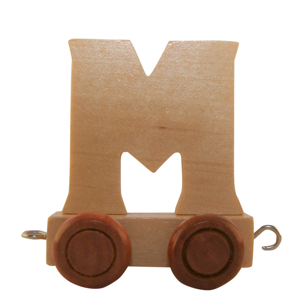 Smuk bogstavvogn med bogstavet M i træ til at sætte sammen og danne ord. Togvognen er med krog foran og bagpå, så den kan hægtes til de andre vogne. Sød idé til børneværelset eller fødselsdagsbordet, hvor man kan skrive barnets navn, "TILLYKKE" eller noget helt tredje af de små søde vogne, der sættes sammen.