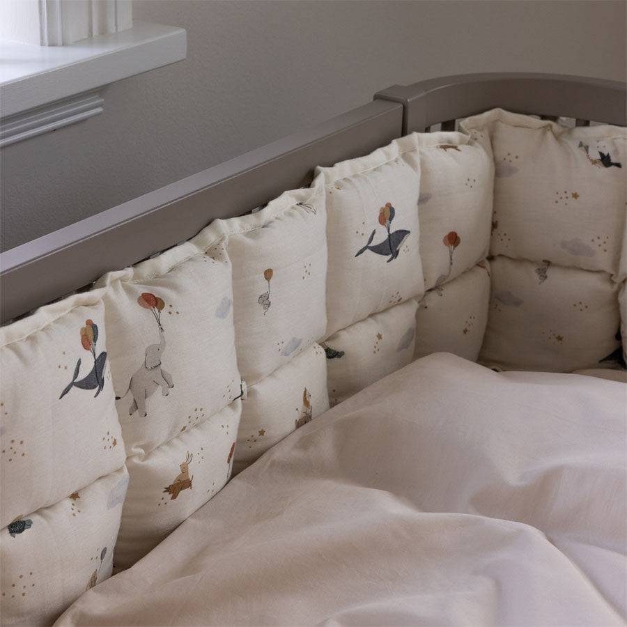 Sebra Sengerand Kapok, World Of Sebra er en blød og funktionel sengerand med kapokfyld, der skaber en tryg og komfortabel soveplads for baby. Det vendbare design med det fantasifulde World of Sebra-print giver fleksibilitet og et smukt udtryk i barnesengen.