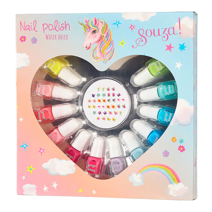 Farver, glimmer og små detaljer, der gør hverdagen lidt sjovere. Souza Neglelak Gaveæske er et kreativt sæt fyldt med farverige neglelakker og fine negleklistermærker – perfekt til børn, der elsker at lege salon, style deres egne negle og skabe nye looks igen og igen. En oplagt gaveidé til fødselsdag, hyggeaften eller leg med veninderne.