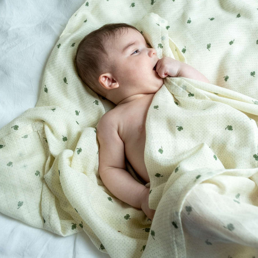 That’s Mine Jana Muslin Svøb, Specks Of Luck Blødt, åndbart muslin-svøb i 120 x 120 cm – smukt print og alsidigt i brug ✨