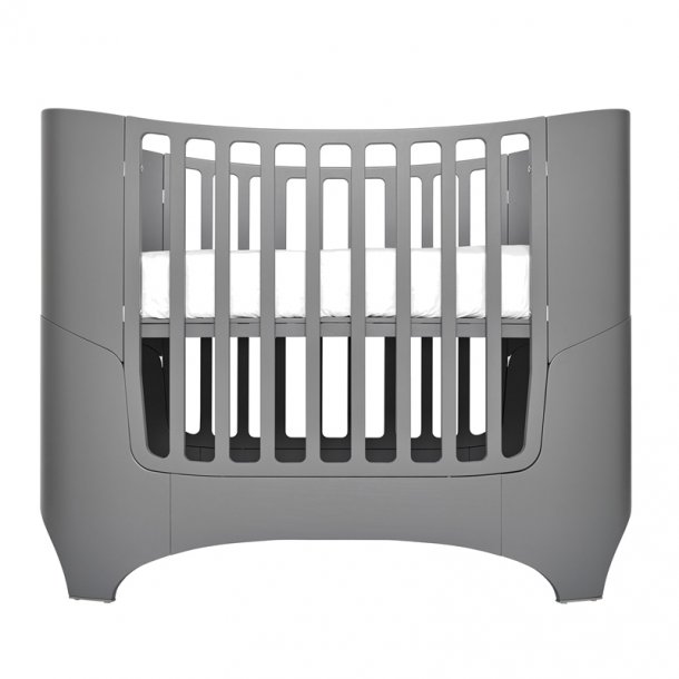 Flot og stilfuld babyseng i gråmalet bøg fra Leander®. Sengens bund har praktiske ventilationshuller og kan justeres i to forskellige højder. Dette er praktisk, når baby vokser og bliver mere aktiv, og du derfor får brug for at sænke bunden for at sikre, at baby ikke falder ud af sengen. Desuden kan sengens tremmersider fjernes, når barnet selv begynder at kunne træde ud af sengen. En skøn seng der passer smukt til de fleste indretninger og med rige muligheder for at følge barnet mange år frem. Sengen kan udbygges til juniorseng ved tilkøb af juniorkit.